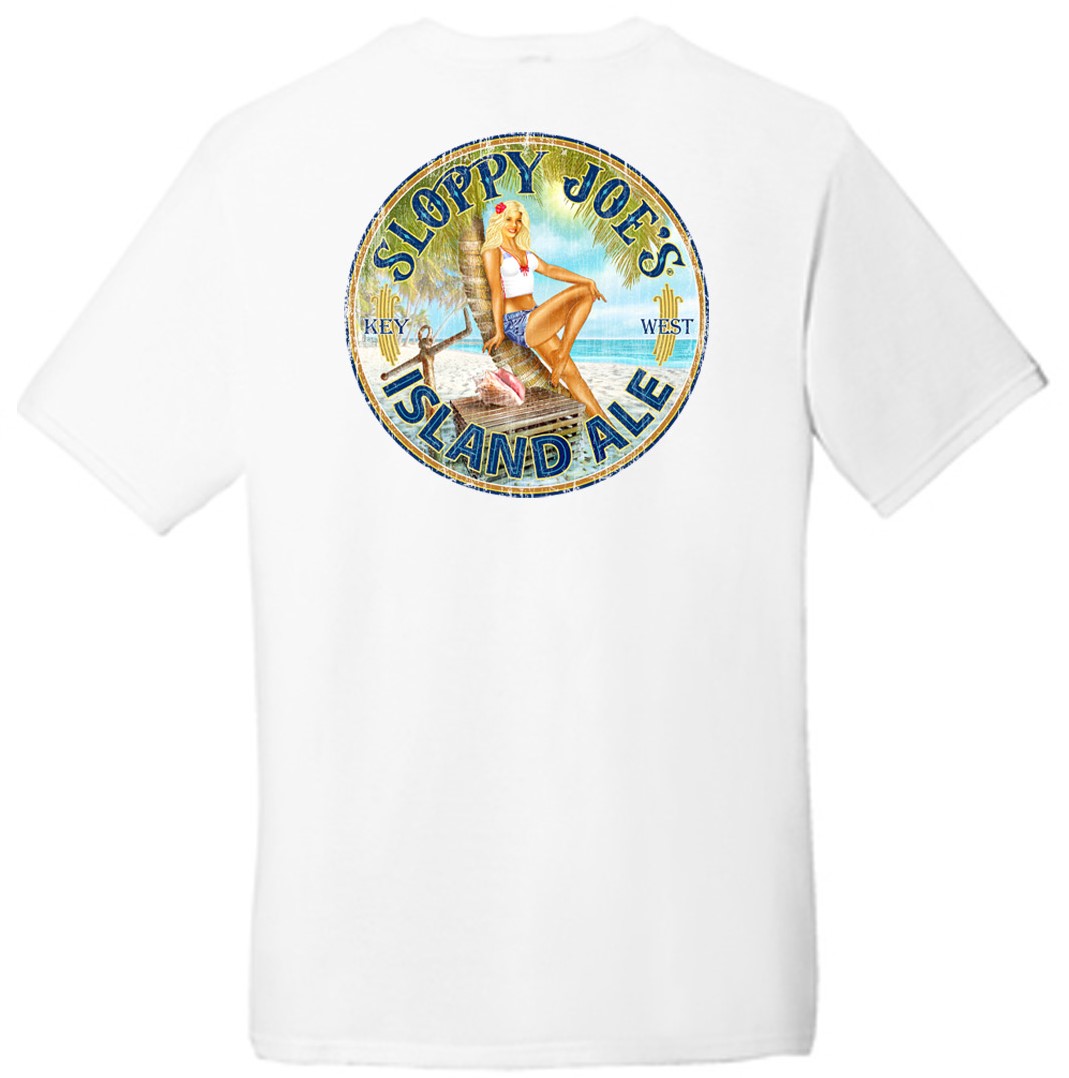 Be the envy of your friends when you wear this vintage Sloppy Joe’s Island Ale t-shirt featuring the blonde beach beauty.